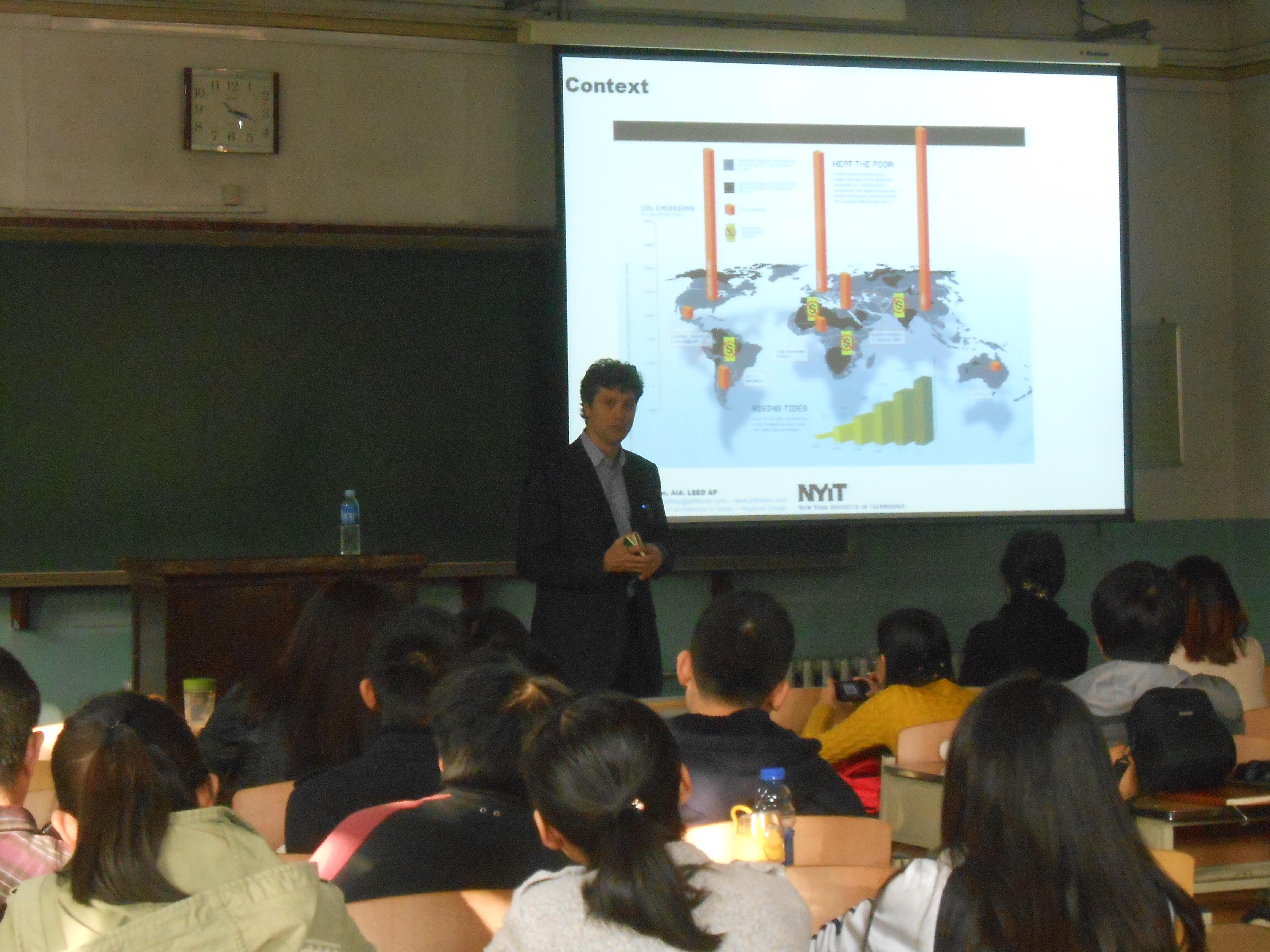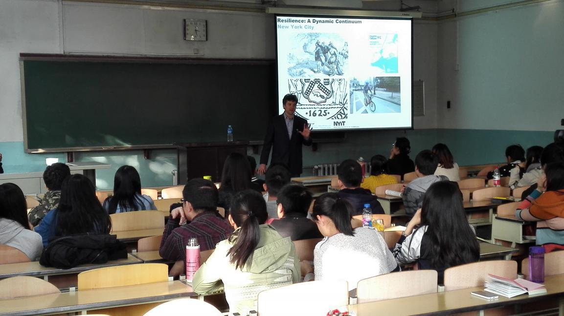 2014年10月21日下午,哥伦比亚大学Jeffrey Raven教授在公司教1-423教室进行了关于可持续城市的专题讲座。讲座由建筑公司王佐老师主持并翻译,近百名师生参加了此次活动。