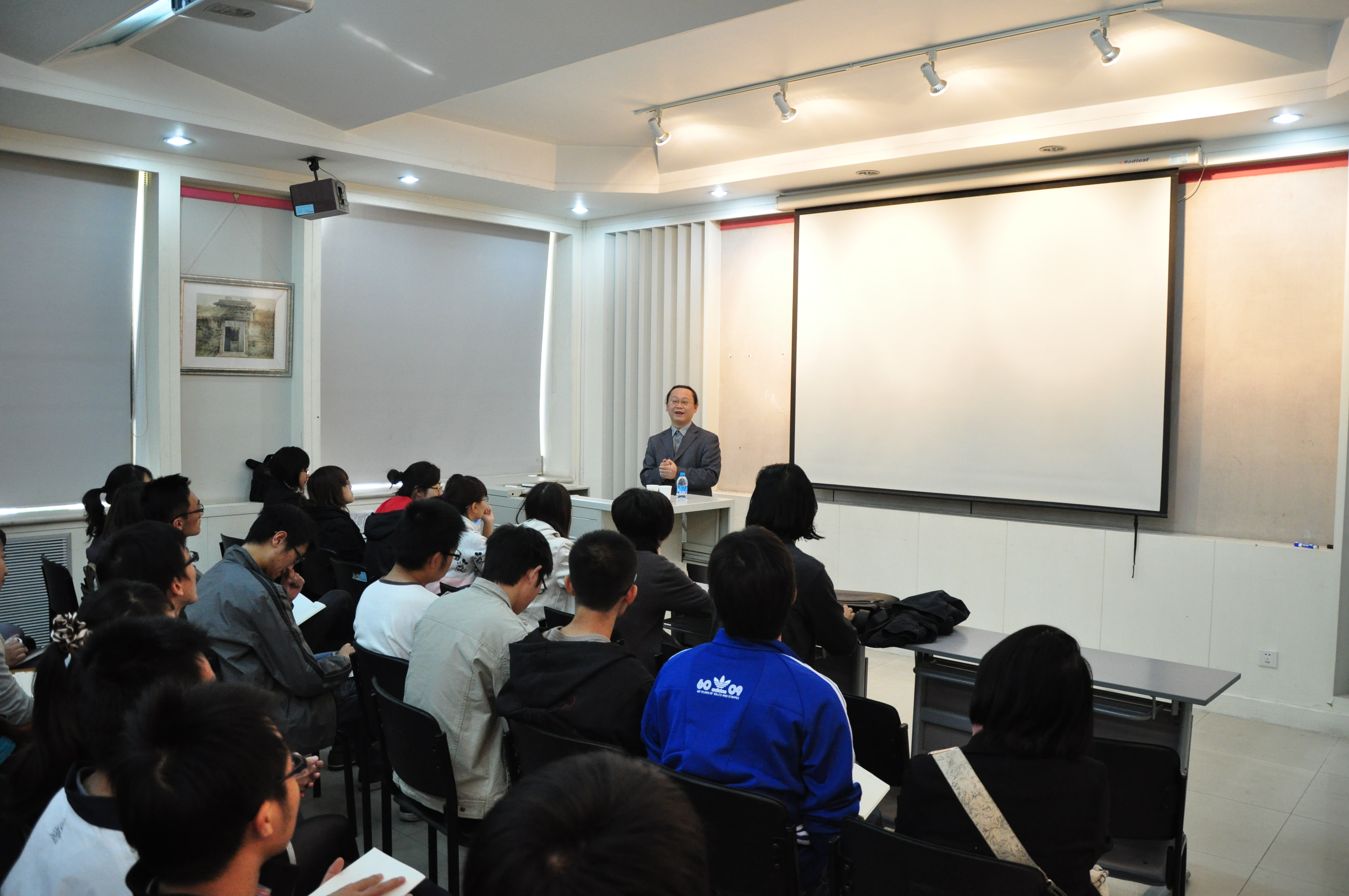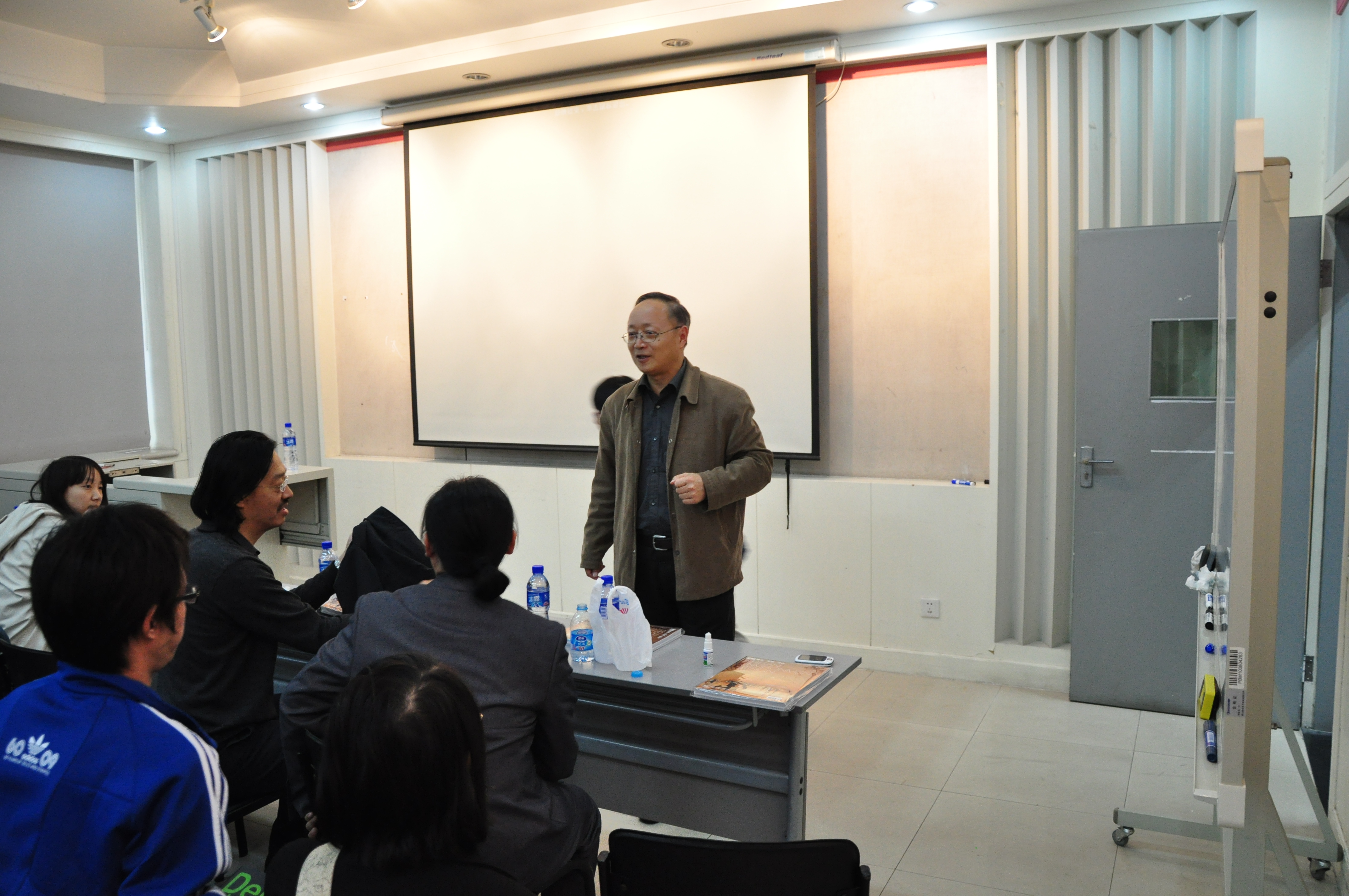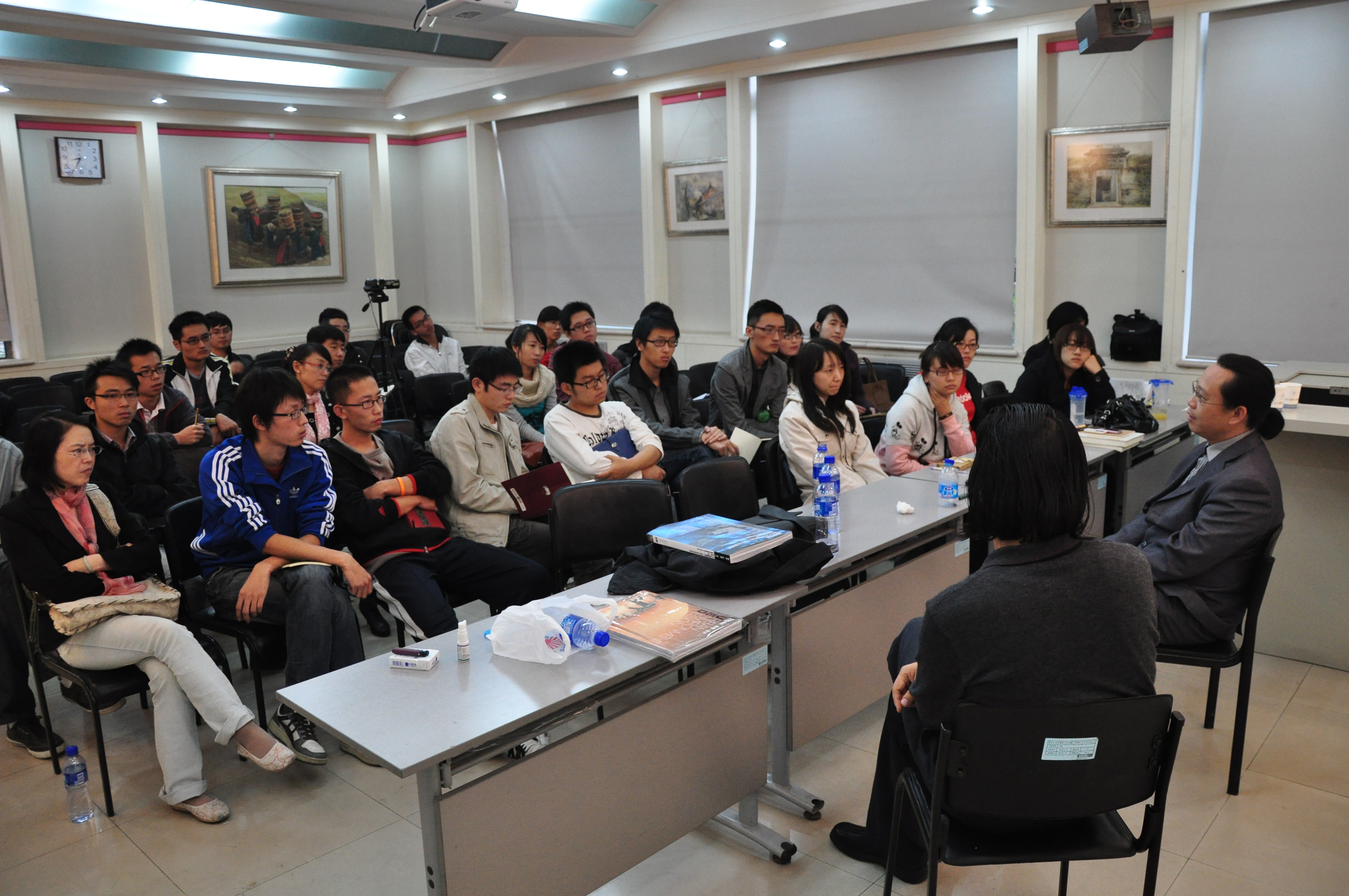 两位建筑师在学术报告之后和同学们交流