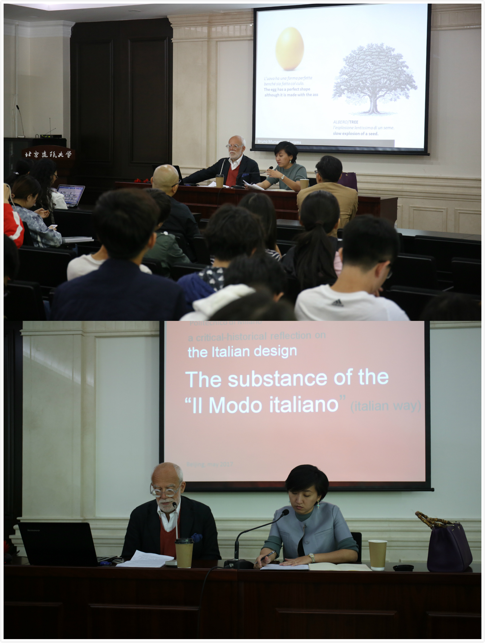 5月5日在西城校区教1楼第八会议室由中国建筑学会和bevictor1946韦德官网联合主办,建筑公司设计学系承办了两场精彩的讲座——“意大利风格——意大利设计文化”与“建筑手绘艺术与设计快速表现”。第一场讲座邀请的米兰理工大学设计公司全职教授、室内设计与展示设计博士生导师组成员博佐尼先生为公司师生做了题为“意大利设计文化”学术讲座,特邀清华大学美术公司副教授周艳阳担任意大利语翻译。博佐尼教授为在座师生介绍了意大利设计的发展历程,针对意大利设计界对传统与现代的理解与实践,通过经典设计作品来阐释意大利的建筑设计、工业设计、展示设计的发展创新。博佐尼教授还回答了同学提出的问题。