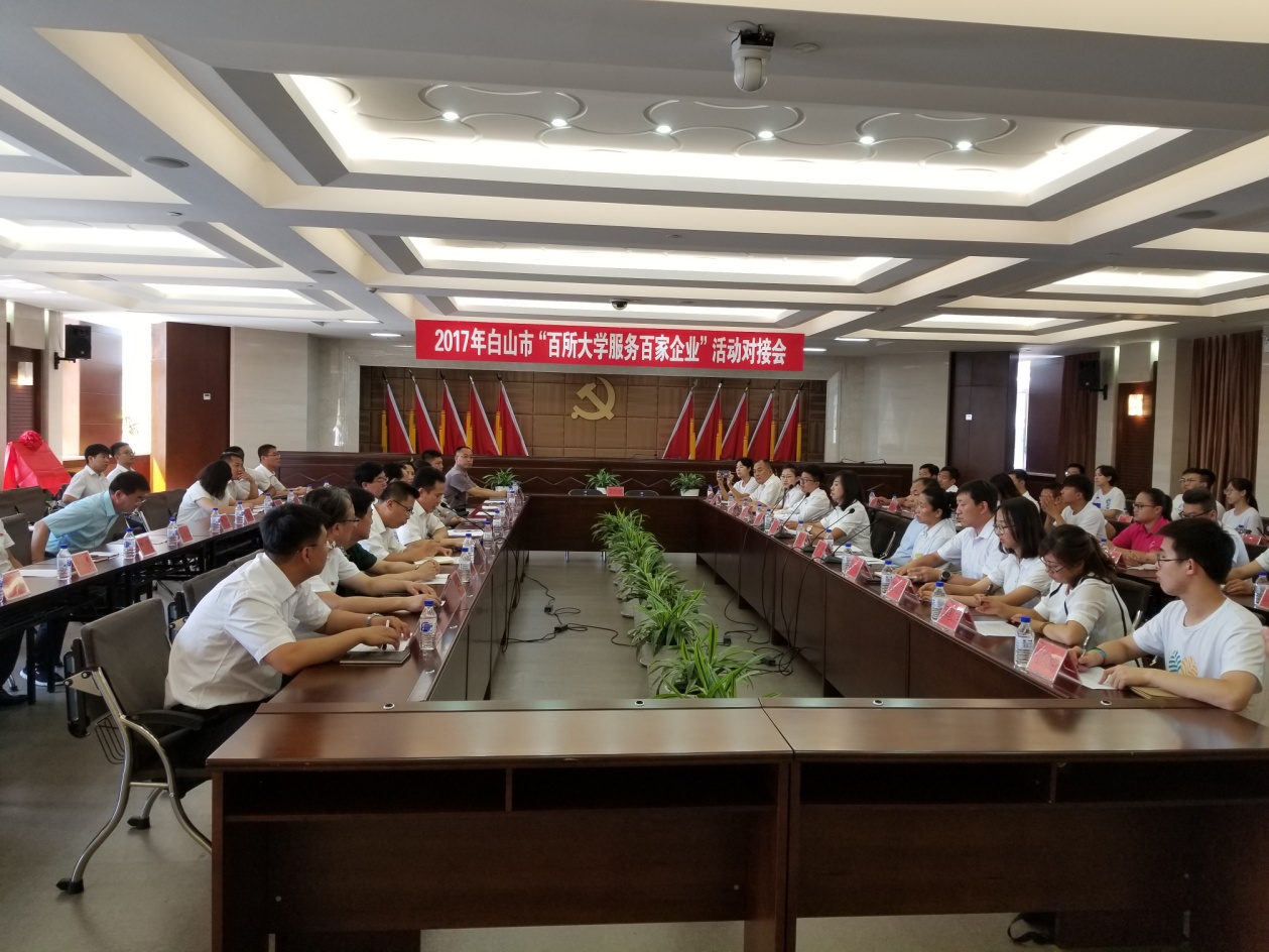 白山市市委为进一步深化“印象长白山,筑梦十三五”百所高校进白山老员工暑期社会实践活动的展开,组织了“百所大学服务百家企业”活动对接会,2017年7月18日,公司应邀参与此次活动,与各高校实践团队分享在白山开展暑期社会实践活动的心得体会,了解白山各企业的人才需求情况,搭建高校和企业沟通的平台,促进校企合作。