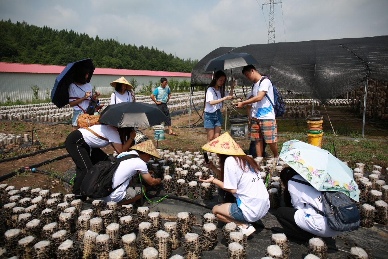 第一次来到木耳采摘基地的师生都兴奋不已,在相关负责人介绍完木耳的培育与晾晒过程后,师生就开始大显身手,身影活跃在采摘基地中。
