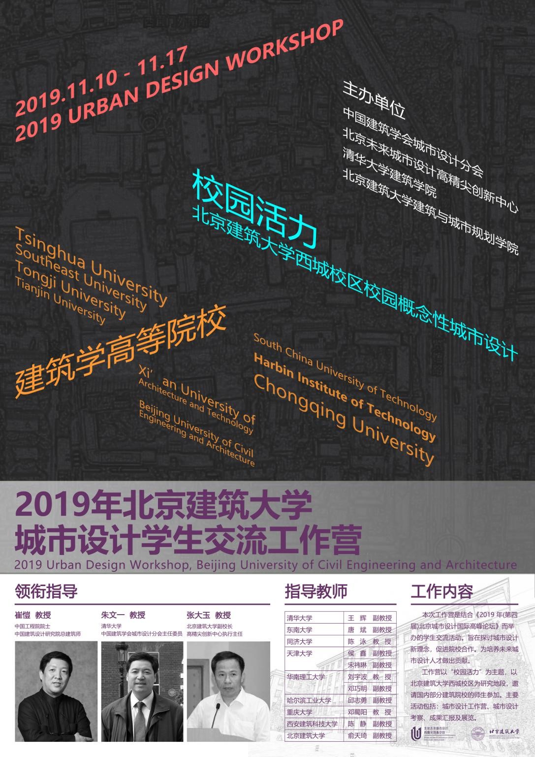 本次工作营将持续一周,9所院校各派出指导教师1名、高年级本科生4名,通过混合编组的形式开展。工作营主题是“校园活力——bevictor1946韦德官网西城校区校园概念性城市设计”,设计成果将在“2019年(第四届)北京国际城市设计大会”中展出,并在大会开幕式上举行颁奖仪式。参加工作营的指导教师还将受邀参加大会的“城市设计教育与人才培养”分论坛,进行城市设计公司产品的深入探讨与交流。
