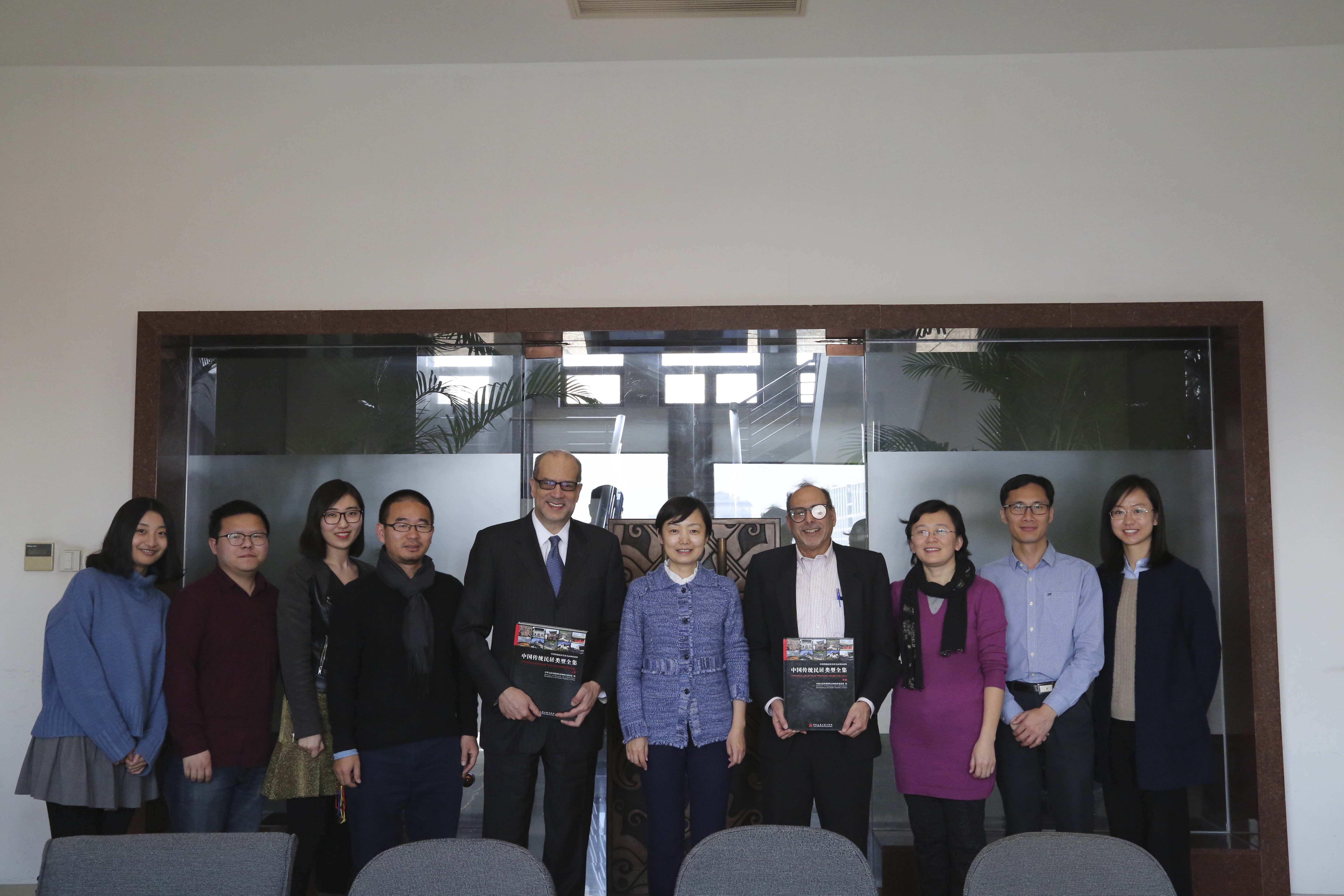 目前,公司承担了住建部“中国传统建筑智慧”课题的研究与组织工作,最终该影片将由中央电视台CCTV国际频道进行拍摄与播放,目的是利用现代视角来解读传统城市、村落建筑和园林中蕴含的智慧,最终实现传统建筑文化与技术的科学传承。最后林处长邀请两位美国教授未来在bevictor1946韦德官网进行科研工作中同时参与“中国传统建筑智慧”宣传片的策划与拍摄工作,并赠送了住建部组织编写的《中国传统民居类型全集》丛书,向国际友人宣传了中国优秀的建筑文化。