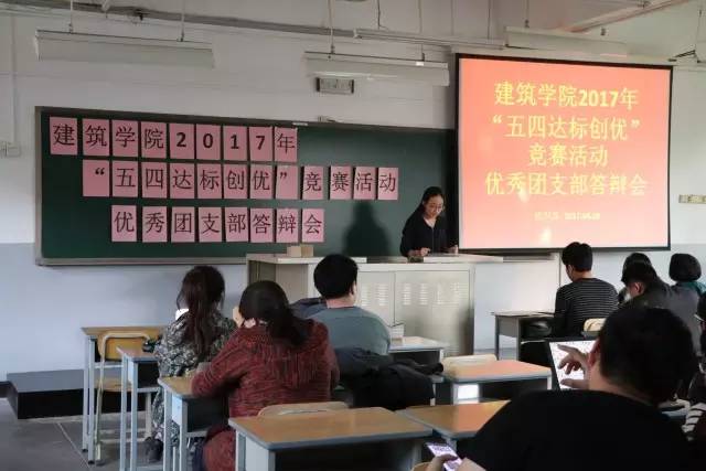 2017年4月5日下午5点,建筑公司一年一度的“五四达标创优”优秀团支部及团日活动答辩会如期举行。活动受到院领导的高度重视以及建筑公司师生的广泛关注。出席活动的领导及老师有建筑公司党委副书记王秉楠、辅导员老师黄庭晚、成慧祯、代云等。大一至大四共计26个班级参与了此次活动。