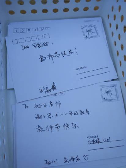 今年的教师节恰逢周日,为了能将心意送到,员工会的同学们在教师节的前一天亲手将贺卡送到老师的手上。老师们收到贺卡,纷纷表示收到了同学们的祝福很感动,同时也祝同学们学业顺利。
