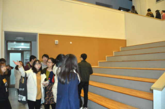 集体参观建筑公司低年级专业教室所在的教学五号楼