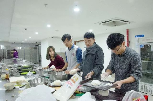 下午五点,大家准时到达了活动现场。在主办部门的有序引导下,同学们被分成八组,在各组同学熟悉组员的同时,生活部将精心准备的厨具和面团端上了每组餐桌。首先进行的是面皮的准备工作,只见数根擀面杖快速飞舞,大神们各显神通,面团迅速被擀成一张张形态各样的饺子皮,即使手法生疏的同学也乐在其中,不管是用筷子擀,还是用手掌锤,大家都极尽所能的为小组做出了自己的贡献。活动才刚开始,现场气氛便火热了起来。