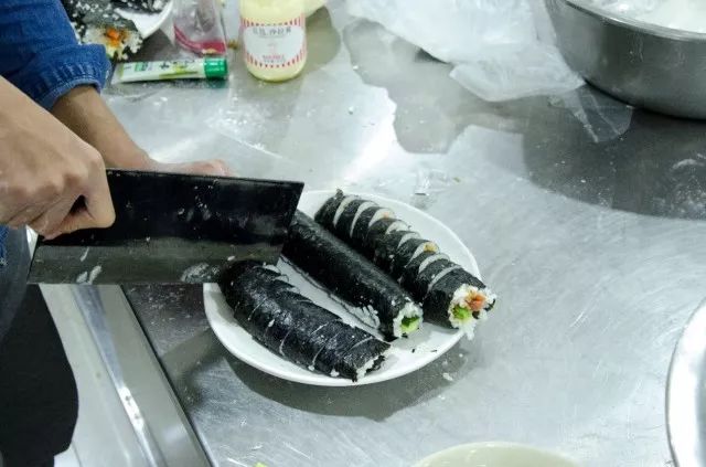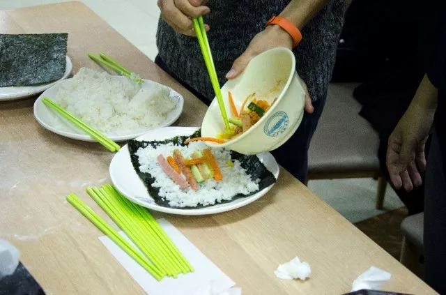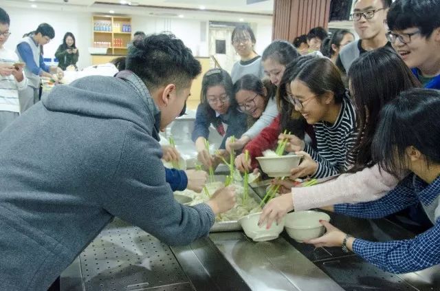 饺子烹制的过程中,同学们还制作了简易寿司。等到食堂师傅把饺子端出,同学们一拥而上,一眨眼的功夫盘中的饺子就已经所剩无几。大家吃着自己制作的饺子和寿司,收获着满满的成就感。整个食堂地下一层洋溢着节日的温情。