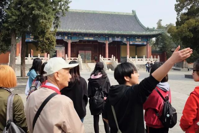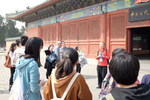 骑行的最后一站为先农坛,同学们自行选择入内参观。我们还特别请了博物馆内的讲解员为同学们进行讲解。讲解员不仅为大家详细地介绍古建筑、分析建筑结构、认知建筑外观,还在其中穿插着历史故事,讲解员的讲解栩栩如生,仿佛置身于千百年前。其中,还讲解了区分古代建筑等级的几种方法,告诉了我们什么是斗拱、梁、枋、椽,同学们用心聆听,并不时提出问题,收获颇丰。