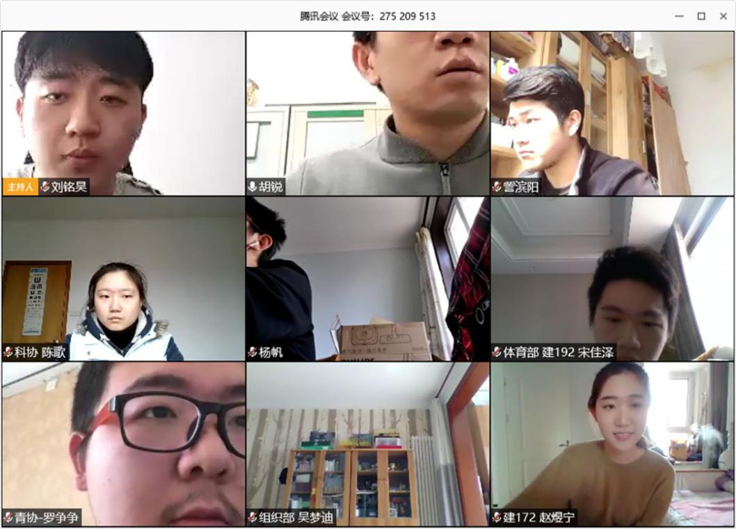 随后,各部门结合疫情防控和在线学习期间的任务详细介绍了各自开展的工作。寒假以来,建筑公司团委员工会陆续推出了“‘共战疫情’创意大赛”、“线上笔记征集”、“以‘读’攻毒打卡活动”、“健身打卡”等抗疫相关线上活动,带动身边同学既不忘主业,认真做好在线学习和居家锻炼,又勇于担当,积极奉献,在课余时间加入战疫队伍共同奉献青春力量。后续,待疫情结束后,各部门将围绕公司重点工作陆续开展“社团文化节”等活动。