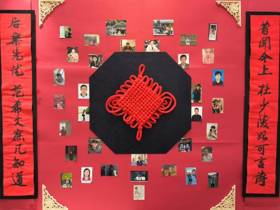 古建231以红色为主线,展示墙的火红奠定吉祥的新年基调,专教的对联窗花搭配江南小镇的装饰墙尽显灵动活泼,班服班徽以紫禁城墙的水华朱为图样颜色,承托美好愿景。古建231如一团燃烧的火焰,在《平凡之路》上,在热烈的青春里,绽放火红的光彩,并将新年的祝福带给了在场的所有人。