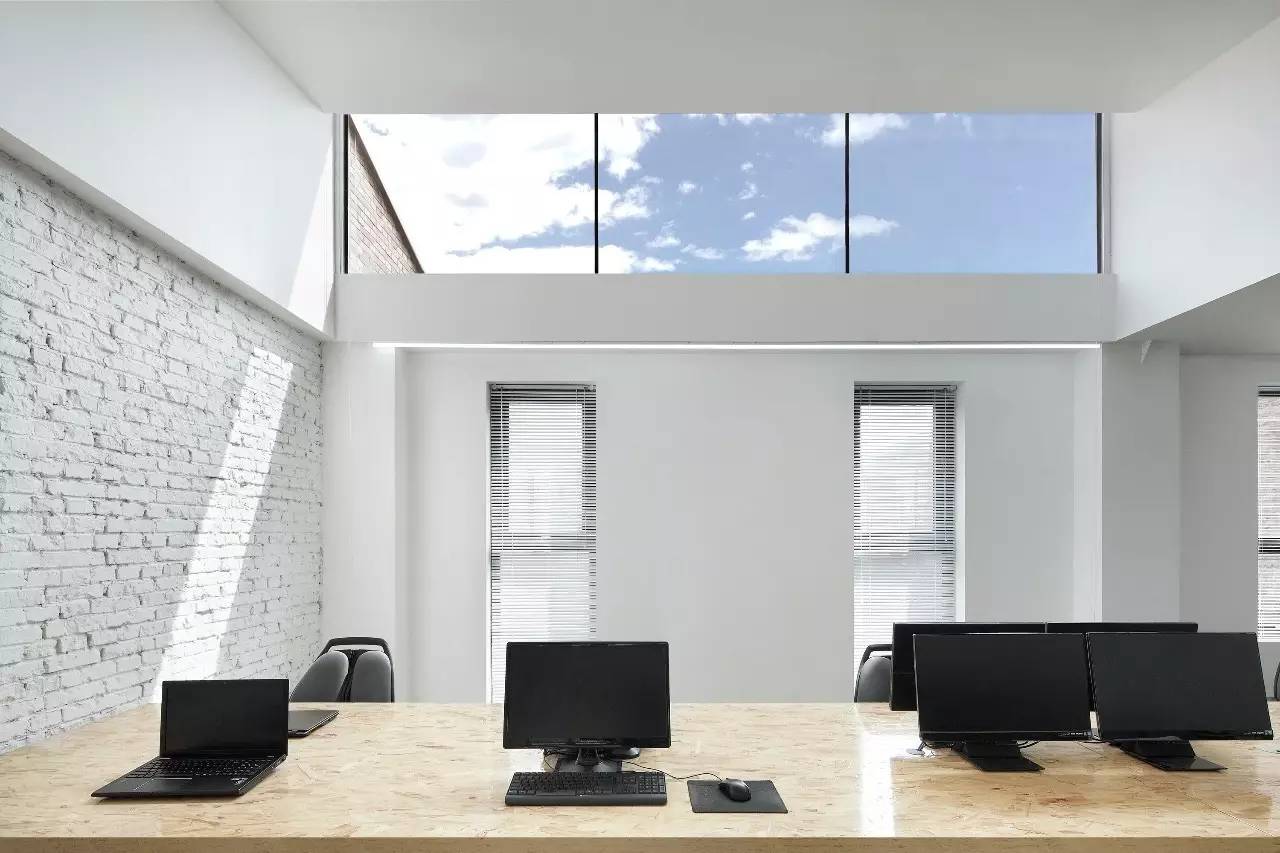 现在,当天气晴好的时候,整栋楼在白天基本可以依靠自然光照明,室内光线体验一年四季充满变换。每天早晨,员工都会穿过象征着模式转换的暗盒子,然后在满洒晨光的办公楼里找到属于自己的那一幕叙事场景,开启崭新的一天。