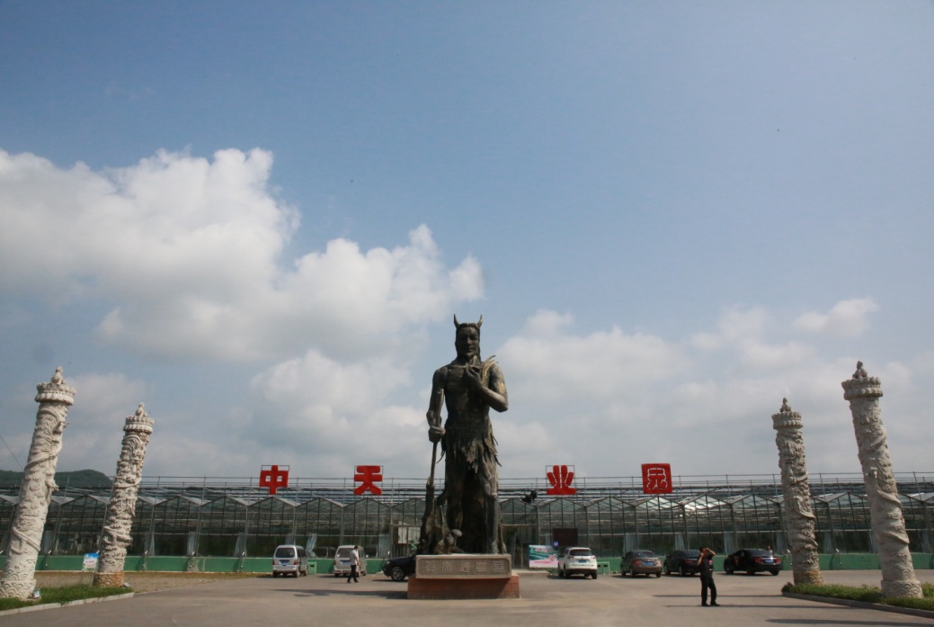 进入农业园正门,矗立着高大的神农氏雕塑,手执开垦巨斧,象征着对承继古老耕作的现代农业的赞许。实践团队参观了现代农业培育技术,培育无污染,无化肥的纯绿色食品,也体验了采摘果蔬的过程,在亲自劳作之后,大快朵颐。
