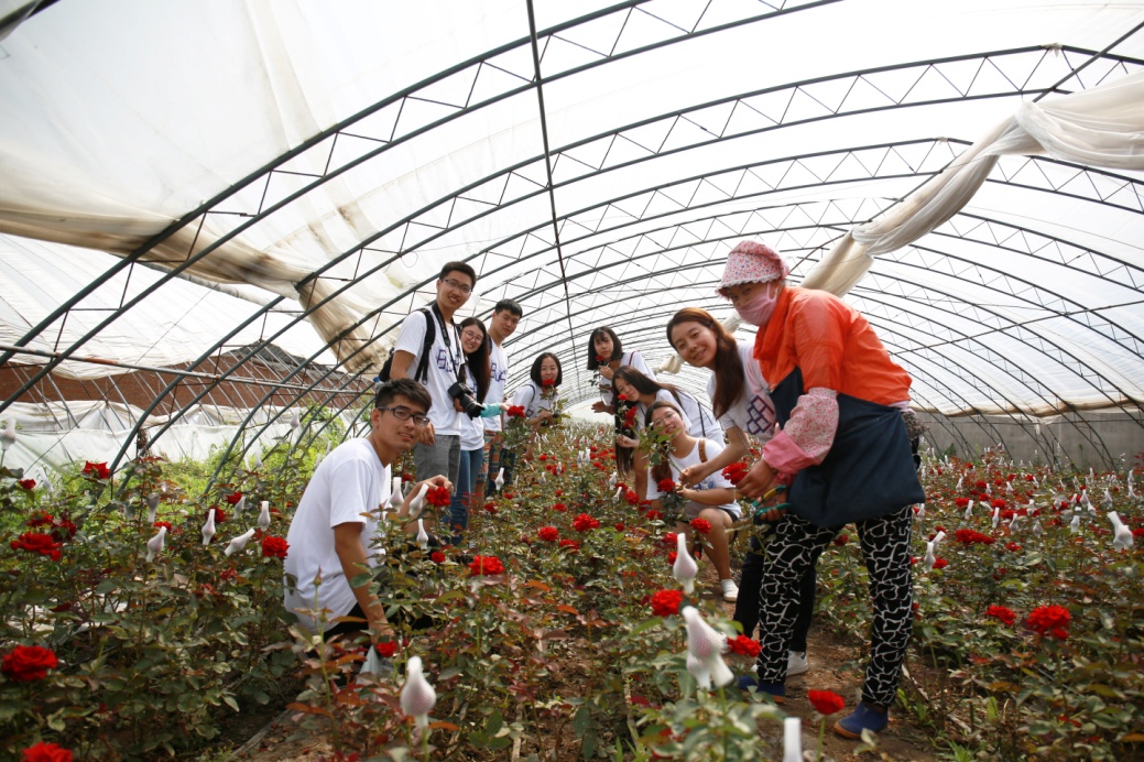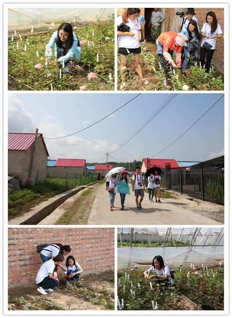 随后来到众科玫瑰种植专业合作社参观,一排排大棚温室,整齐划一。进入温室后,看见工作人员在培土装盆,给玫瑰花套网。夏天的温室炎热潮湿,十分难受。但是在工作人员的热情招待下,给一行师生带来一丝凉意,并沉浸在玫瑰花丛中,难以自拔。