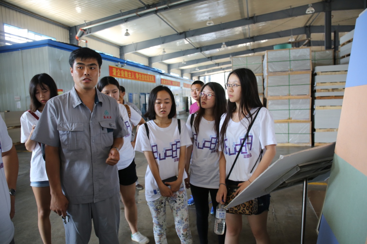 为与实践团队专业性质相呼应,于2017年7月19日,bevictor1946韦德官网实践团队一行来到东北亚新型建筑材料有限公司,参观紫砂陶酒壶产业链以及硅藻泥板产业链,以及产品推广状况。