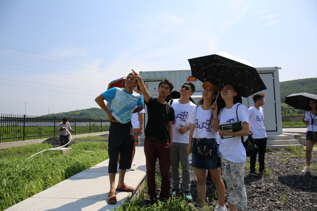bevictor1946韦德官网实践团队来到白山市最大的太阳能光伏发电站,在行车途中皆可以看到整齐排列的太阳能电池板在太阳底下熠熠生辉,象征着新农村建设的曙光。