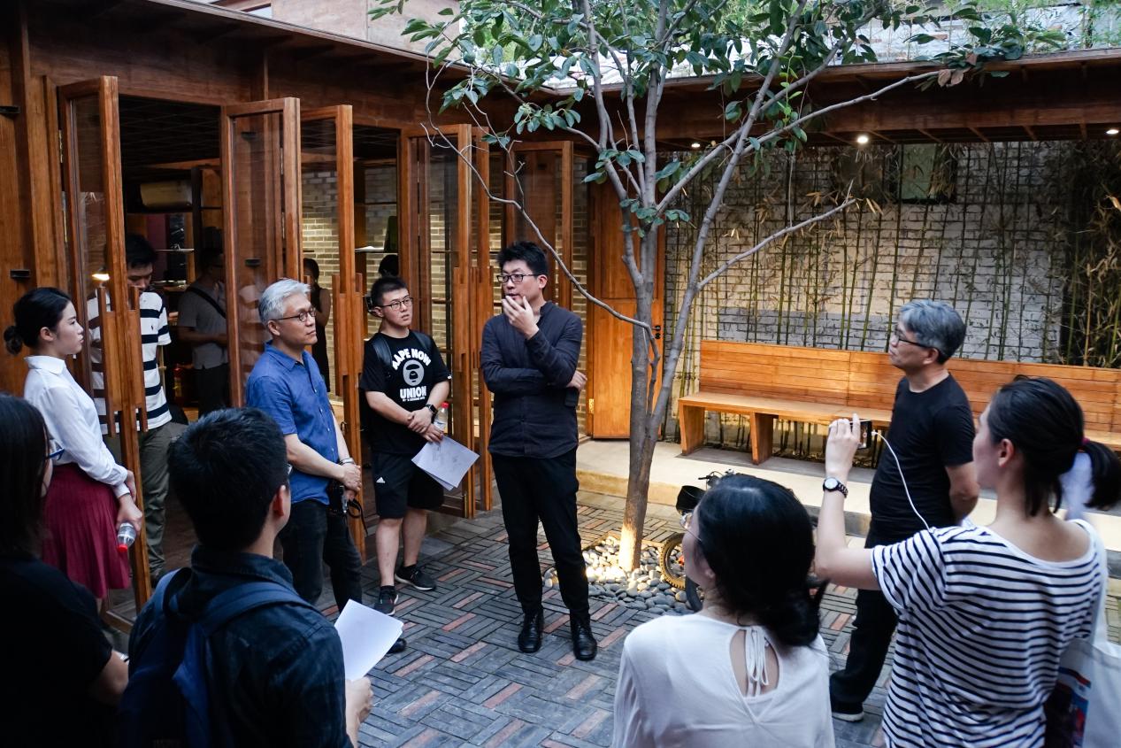 在参观过程中,建筑师董功详细向学员们介绍了胡同小院的功能布局、建造过程。学员们在参观过程中也针对建造所使用的材料、结构问题、建筑师与甲方和政府之间的关系、以及关于胡同改造的相应的政策法律法规与董功进行了谈论。