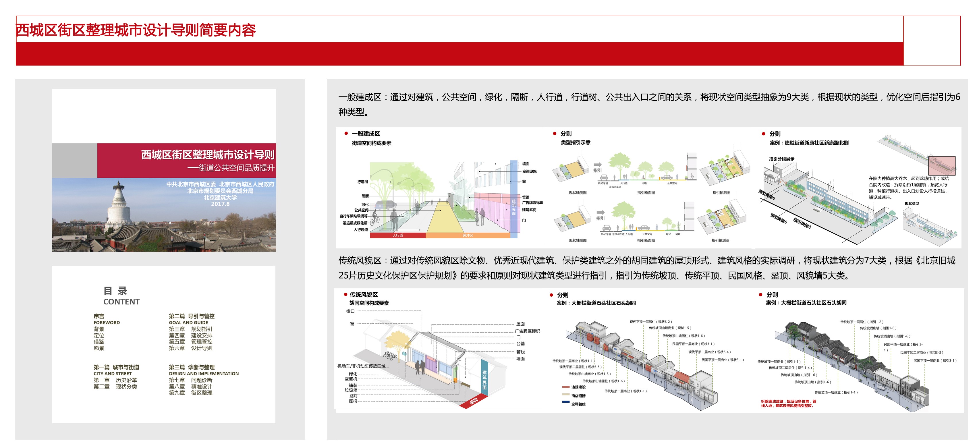 在大量调研的基础上,团队成员借鉴了其他国家首都如华盛顿、堪培拉、伦敦、巴黎等城市的街道设计导则经验,同时结合西城区规划管理与街道建设实施的具体情况,编制了街区整理城市设计导则。