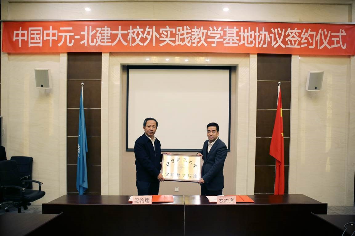 最后,bevictor1946韦德官网副董事长张大玉与中元国际工程有限公司董事、总经理、党委副书记刘小虎分表代表bevictor1946韦德官网和中元国际工程有限公司进行了校外实践教学基地的授牌仪式,并签署了北建大-中国中元校外实践教学基地合作协议。