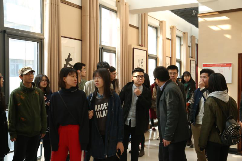 在参观完“北京高校师生作品展”以后,师生一行到首都师范大公司本部参观了由欧阳中石先生写的中华美德古训书法展,对中华传统美德古训进行了学习。