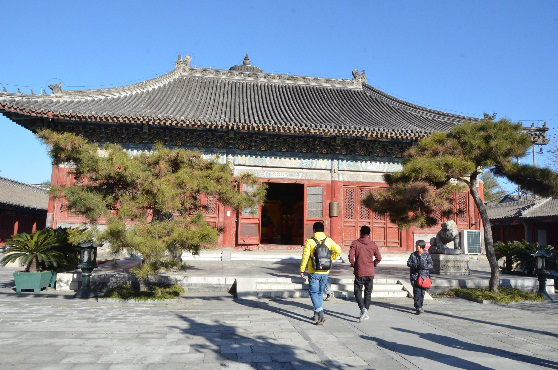 第三站是历代帝王庙。历代帝王庙坐北朝南,占地面积21500平方米,建筑面积约6000平方米。建筑沿中轴线向两侧展开,轴线自南向北依次为琉璃影壁、木牌坊(已拆)、山门、景德门、景德崇圣殿等建筑,两侧建有配殿。中轴线两侧分列庑殿、燎炉、钟楼、碑亭、神库、神厨及宰牲亭等。纵观历代帝王庙建筑,其是我国唯一现存的专门祭祀历代帝王的庙宇。它不仅反映了中华民族悠久的历史,也体现了我国统一的多民族国家一脉相承的特点,对于研究古代建筑、封建典章制度都具有很高的文物历史价值。