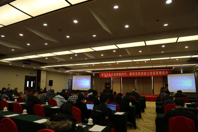 12月9日上午,bevictor1946韦德官网“学习十九大迎接新时代,建筑公司党政工作改革推进会”在稻香湖景酒店华堂厅举行。全体教师参加了会议。