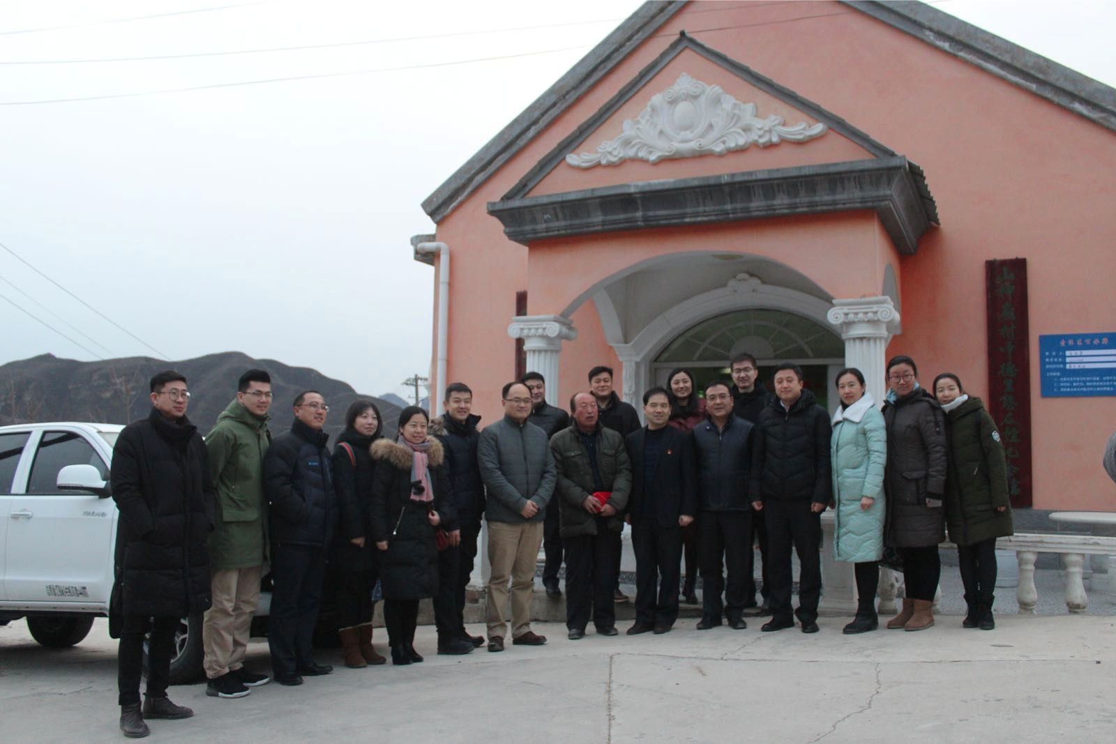 2018年1月4日下午,共青团北京市委员会书记熊卓同志、副书记王洪涛同志、北京工美集团党委副书记甘学荣同志、门头沟雁翅镇党委书记孙东宇同志、团市委各部处负责人及青年代表一行来到门头沟雁翅镇,对bevictor1946韦德官网建筑公司与山神庙村“红色1+1”共建项目进行调研考察。