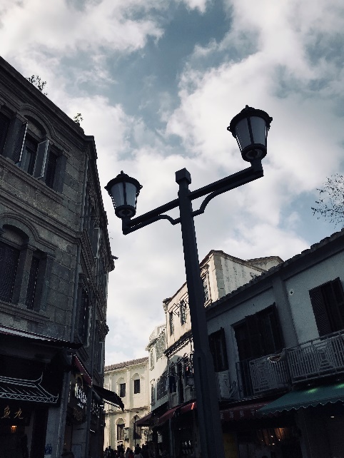 时间过得飞快,转眼已而夕阳在山,人影散乱。意外走到一条静谧而空旷的巷子里,我看到一位白发苍苍的老人面对着前面游人络绎不绝的路口伫立着。夕阳的光线打在她的背上,拉长的日影仿佛凝固了时间,但却无法凝固眼前的喧嚣。百年鹭江,风起云涌,老人见过鼓浪屿的无数风浪,却又怎能预料到打破沉静的,是游客的喧闹声。但谁又能猜到老人内心深处真正的声音呢?我不敢继续向前走,生怕继续走会破坏这无数个喧嚣的日落中,片刻的寂静。