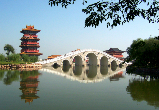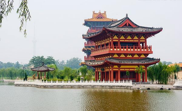 清明上河园是以画家张择端的写实画作《清明上河图》为蓝本,以宋朝市井文化、民俗风情、皇家园林和古代娱乐为题材,以游客参与体验为特点的文化主题公园。再现了古都汴京千年繁华的胜景。图中所示建筑便是园中一角。开封作为一个历史文化名城,之所以每年能够吸引那么多的游客参观,就在于它的历史建筑的完整性与可观赏性,当然这得益于政府对于古建的合理保护与适量开发。现如今,开封的历史建筑仍然保留着族群布局,建筑形象,工官制度的传统中国建筑特点,其多样化的木质结构更使建筑平添几分生动。开封历史建筑的魅力不仅在于建筑本身,建筑与园林湖泊的相得益彰可谓是画龙点睛之笔,植被与水系不仅没有喧宾夺主,反而更加凸显了建筑的特色,可见景观园林师为之付出了不少心血。