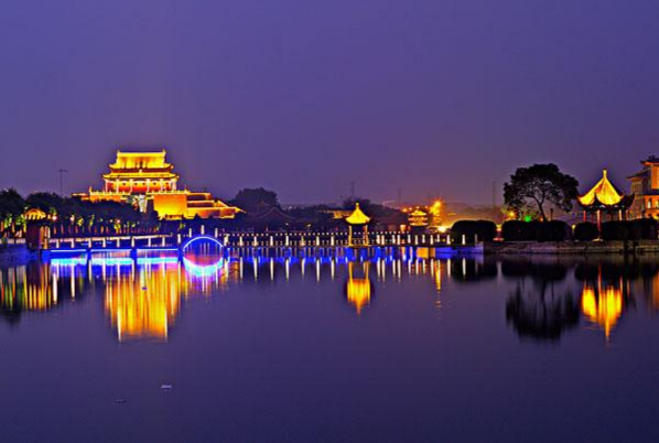 开封的城市规划似乎离不开水系,曾有人称开封为东方威尼斯。虽然有些夸张,但事实便是如此,黄河流经开封时,确实把她养的非常水嫩。来到这里会经常看到人们在湖中划船,游泳。然而,开封水城的美誉,尤其是在暮色四合,华灯初上,一座座横跨水面的桥和清风泛起的水波之中体现的淋漓尽致,美丽而迷人的风采,由此铺展开来一条水系从龙亭到包公祠,包罗万千景象。龙亭是开封景区的中心,周边本就风景宜人。天黑后,湖岸各色的灯光倒映在水面上,更显得夜景扑朔迷离。不论是坐在岸边的石头上吹吹风,还是在午朝门广场踩着音乐跳会儿交谊舞,都别有一番味道。如果觉得广场附近太喧嚣,东湖边还有各种咖啡店和酒吧,环境优雅,任君选择。