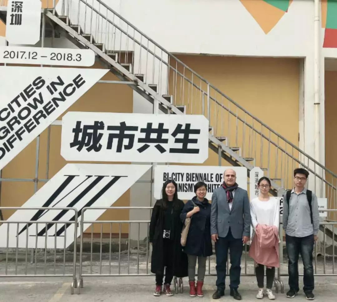展览期间,以生态建筑设计而闻名的西班牙著名建筑设计师比森特·瓜里亚尔(IAAC加泰罗尼亚高等建筑公司创始人、前巴塞罗那总建筑师) 到展览现场参观了作品,并与师生合影留念。