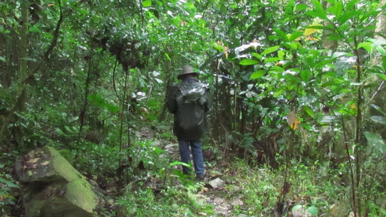 穿过公路进入雨林,隐约可见一条羊肠小道,这是平日里护林员日夜行走的山道。山路蜿蜒难行,泥泞的小路使我不得不担心脚下。路的两边是以前从未见过的奇花异草,在南国的冬天争相开放。