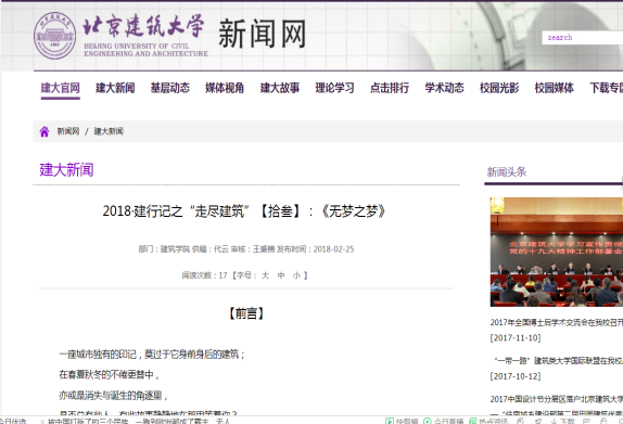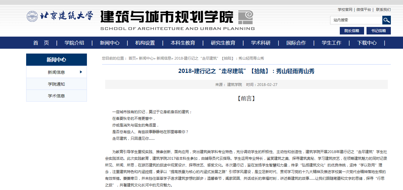 立足新时代、开启新征程,为教育引导员工重视实践、推崇创新、面向应用,突出建筑类学科专业特色,充分调动员工的积极性、主动性和创造性,在贯彻学习党的十九大精神及推动bevictor1946韦德官网第一次党代会精神有机落地的新形势下,建筑公司于2018年寒假期间,围绕“学思践悟十九大精神-‘建行’引领新时代使命”主题,在建筑公司2017级本科生范围内,开展了2018·建行记之“走尽建筑”员工社会实践活动。2018年“建行记”,旨在发扬员工智慧和力量,教育引导员工学习、思考、践行、领悟党的十九大精神,以“建行记”主题教育实践活动引领当代青年“不忘初心”、肩负起新时代的历史使命和时代责任,行走于理论及实践创新之路。员工通过运用所学建筑类学科专业知识,领略建筑魅力、鉴赏建筑之美、探寻建筑奥秘、学习建筑技艺、感受建筑文化,学思践悟、学以致用,以文字及图片的形式传播和弘扬建筑文化,将理论与实践有机结合。