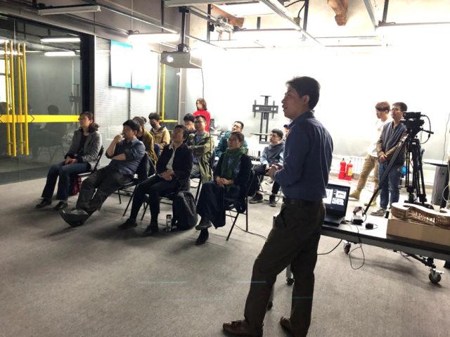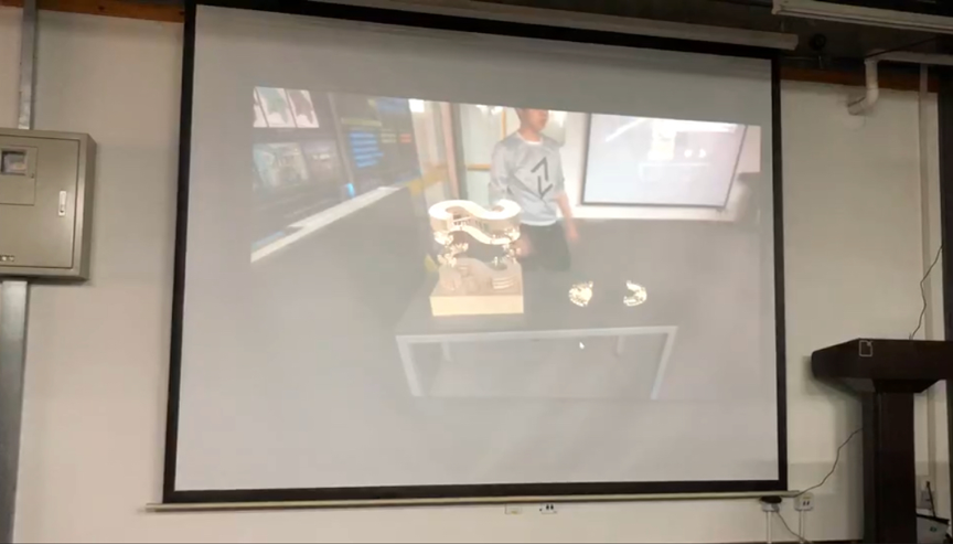 培训首先由李春青副经理对孙鹏一行的到来表示欢迎,并介绍公司国家级虚拟仿真实验中心的建设情况和未来拟开展的研究方向及形成成果。去年开始,建筑技术部主任邹越老师、实验中心主任陈玉龙、杨振老师牵头,协同相关老师,带领公司本科生朱轩宇同学与联想集团晨星AR部门已经进行了近半年的合作研发,已初步形成了部分针对建筑教学中的建筑场景搭建与展示技术和方法的成果。此次培训首先对前一阶段的合作研究成果进行介绍与展示,其次联想集团孙鹏从重点项目介绍、建筑学教学场景的研发以及AR互动体验三个方面对联想晨星AR项目进行了介绍,展示了针对教学环节开发的实验性项目,并与在场师生进行了虚拟现实系统的互动体验。