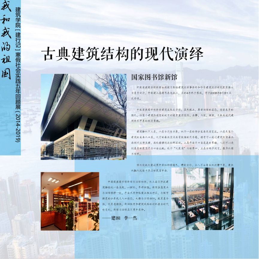 立足新时代、开启新征程,在贯彻学习党的十九大精神及致敬五四一百周年、建国七十周年的背景下,建筑公司员工围绕“我和我的祖国:建行者——挥洒热血青春,引领新时代” 主题,总结2014-2019年五年建行记成果,举办【建行记】寒假社会实践活动五年成果展。