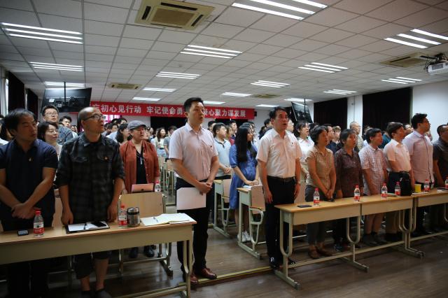 大会在庄严的国歌声中拉开序幕,全体党员起立高唱国歌