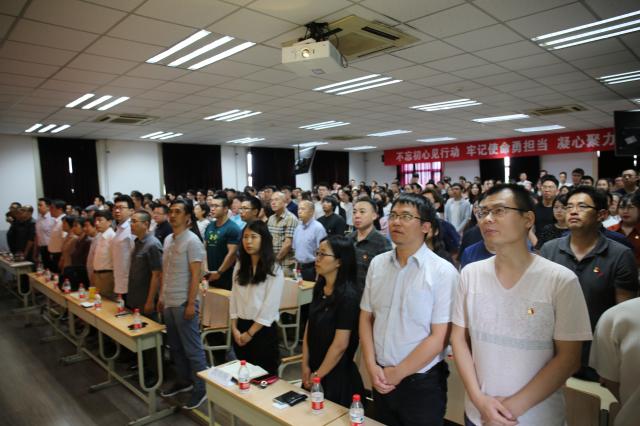 人才培养是大学的基本使命,立德树人是大学的根本使命。全体师生党员应牢记使命,乘势而上勇担当,要做到“三力合一”,即干部要有能力,教师要有实力,员工要有活力。干部要提高觉悟,想干事;要锤炼本领,能干事;要砥砺品行,干成事;要加强修养,不出事。教师应努力培养高尚的师德师风,彰显教师的品格;应努力增强教师教书育人的责任感和使命感,彰显教师的职责;应努力提高教师的文化知识水平,彰显教师的能力。同学们要勇做奋进者,在新时代的广阔舞台上施展抱负、竞展风采;要勇做搏击者,在具有许多新的历史特点的伟大斗争中担当在先、奉献在前;要勇做坚定者,坚持用习近平新时代中国特色社会主义思想武装头脑、指导行动。