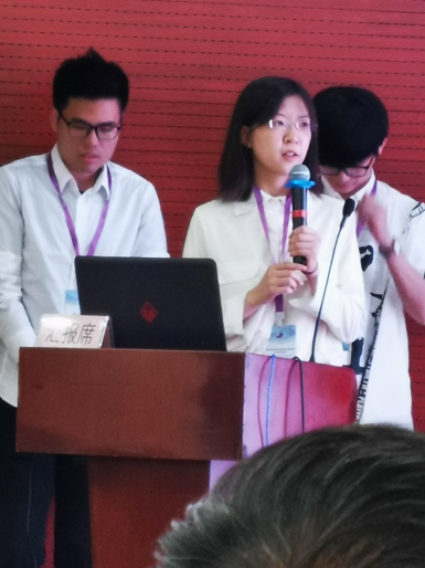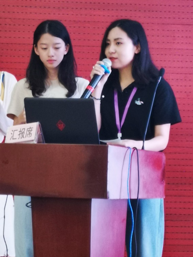 建163张茜越同学进行成果汇报(左图) 建实161钟宇航同学进行成果汇报(右图)
