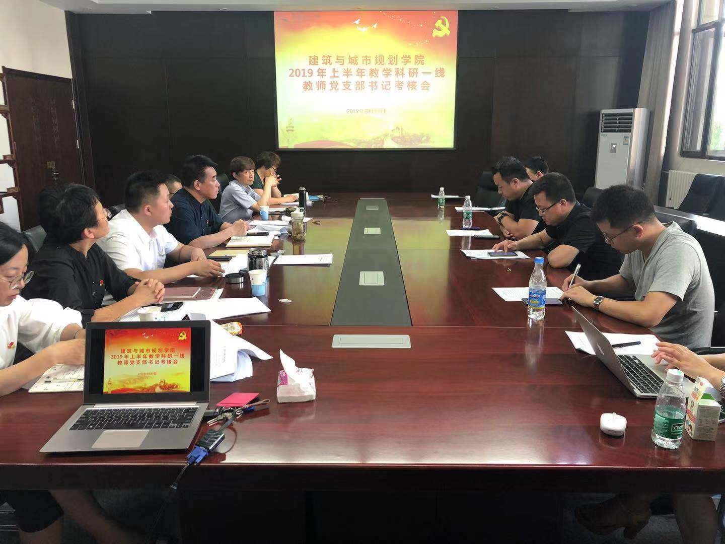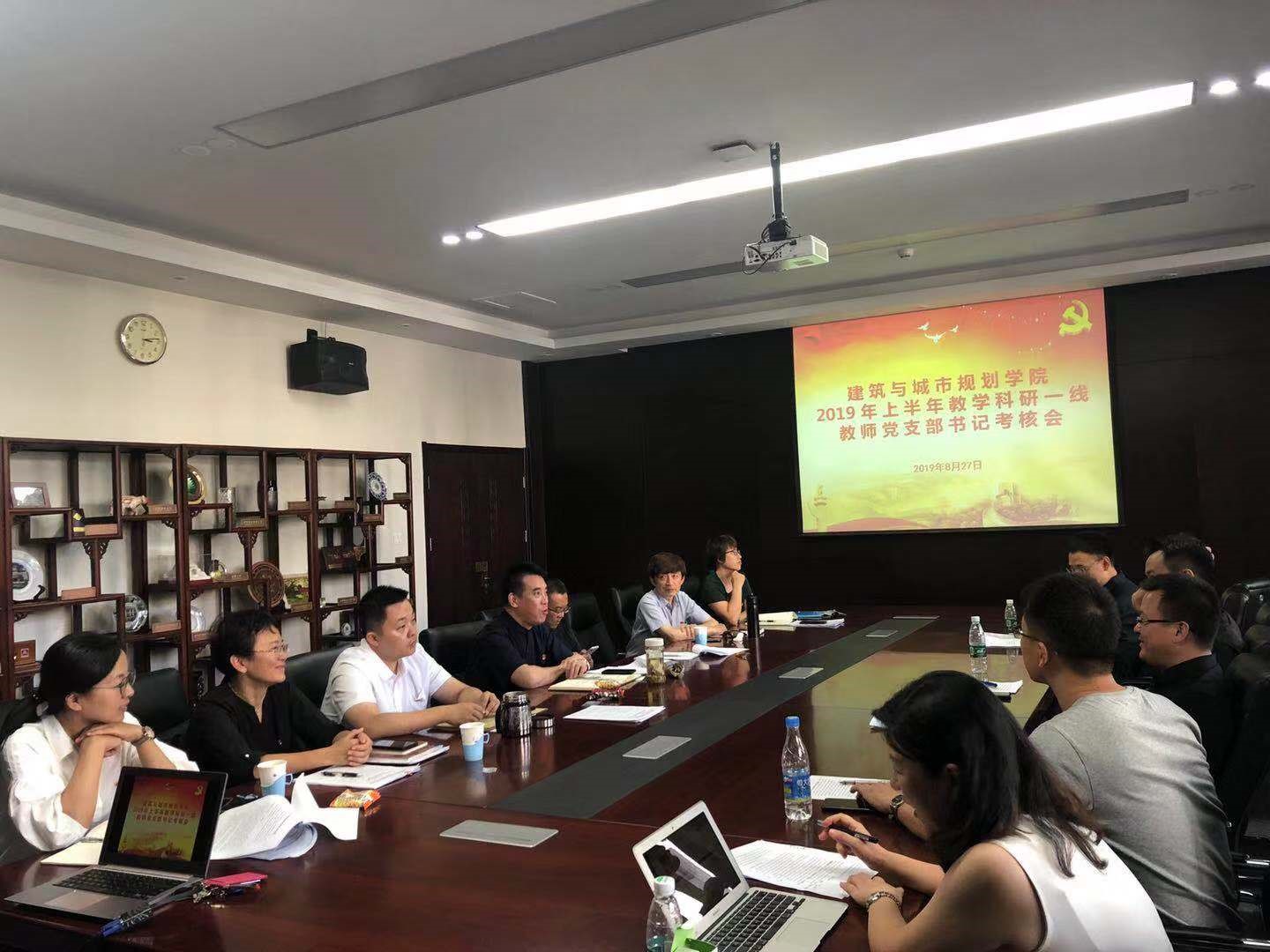 为进一步加强教学科研一线教师党支部书记队伍建设,落实北建大党组发〔2019〕24号《关于开展2019年上半年教学科研一线教师党支部书记考核工作的通知》要求,建筑与城市规划公司党委组织开展2019年上半年教学科研一线教师党支部书记考核工作。2019年8月27日下午2点,建筑与城市规划公司党委在教1-128召开2019年上半年教学科研一线教师党支部书记考核会。建筑公司党委委员、教工党支部书记共15人参会,本次会议由公司党委副书记王秉楠同志主持。