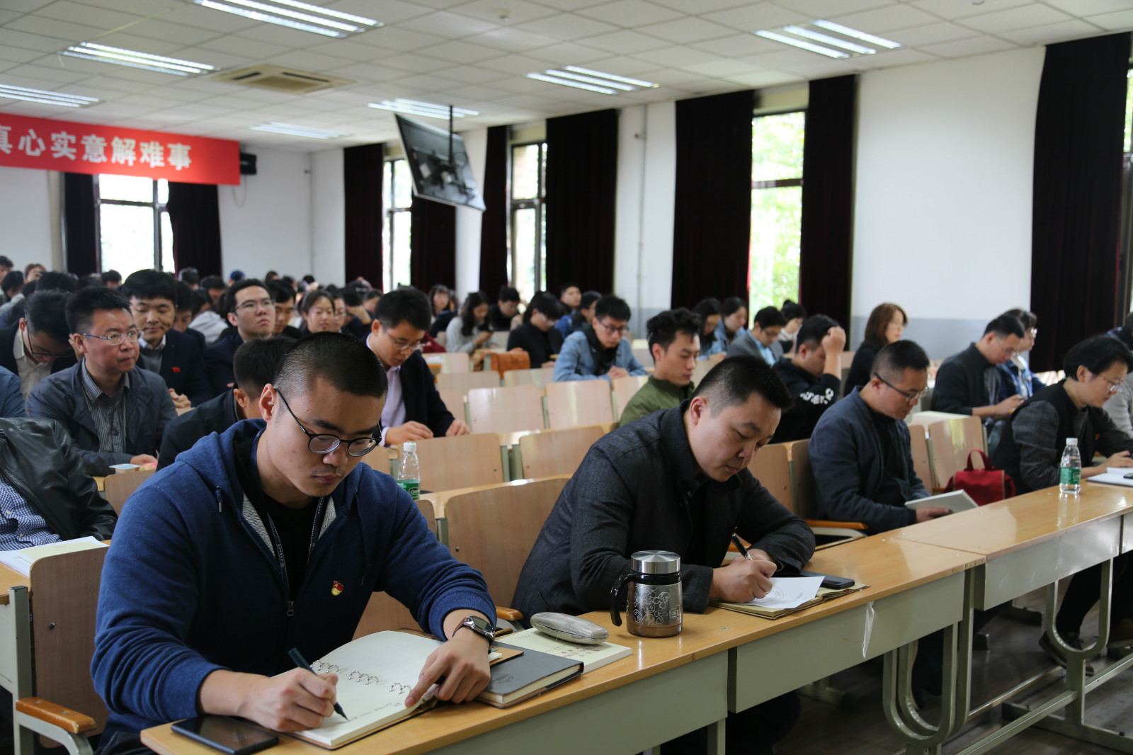 党委书记何立新同志的党课题目为《共产党人的初心和使命——坚持不懈做好事,持之以恒办实事,真心实意解难事》。何立新同志结合公司现状,提出办好人民满意的教育就是我们的初心和使命,要做到这一点,就是应该全心全意为师生服务,切实做到为师生“坚持不懈做好事,持之以恒办实事,真心实意解难事”。