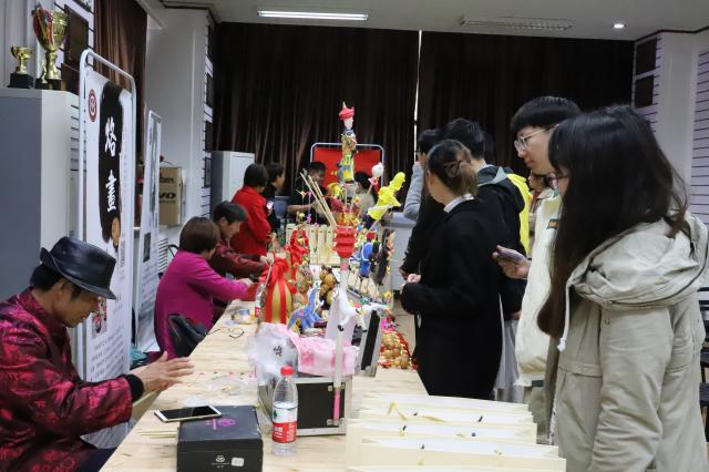 2019年11月12日下午,在图书馆一层教工之家,亳州非物质文化遗产传承人老师们为我们带来华佗五禽戏、糖画、烙画、面塑等众多精彩非遗传承项目。