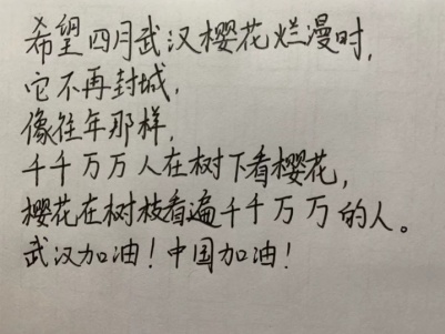 身虽在五湖四海,仍心系武汉。黑夜终会过去,黎明必定到来。期盼春暖花开之日。