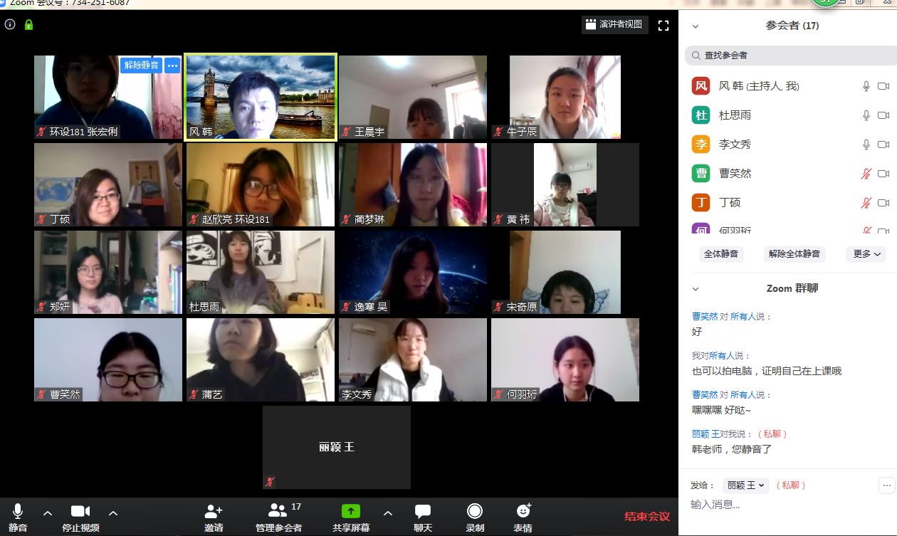 在线教学第一周已经结束,韩风老师将根据线上教学的特点和遇到的种种困难,以及员工的反馈进行适当的调整。相信经过不断的磨合和努力,线上教学方法能够适合此阶段教学要求,不但没有折扣,而且更具特色并能在日后教学环节持续开展。