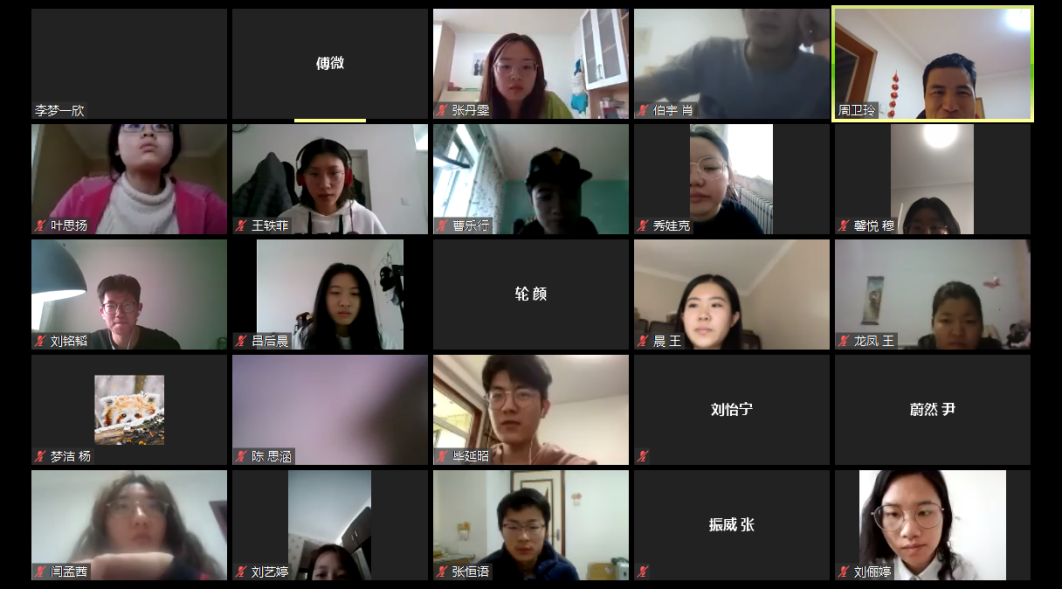 自由讨论的时候,同学们也可以听到每位老师针对自己所提问题的解答,同时也能听清其他同学的疑问和认识,对课题的思考更加深入。小组汇报的时候,由于大家网络环境不同还有许多有意思的事情发生,但这些都没有影响大家用心的汇报,老师也依旧细细记下每组汇报的问题一一点出,有时还在屏幕上写板书、分享屏幕更清晰的演示,让同学们更加直观的认识到问题和分析重点。有时老师提到的案例可以直接发到群里,同学查到一些不确定的资料也可以第一时间发给老师们,老师们马上在线解答,一如既往的专业在线,亲情在线。