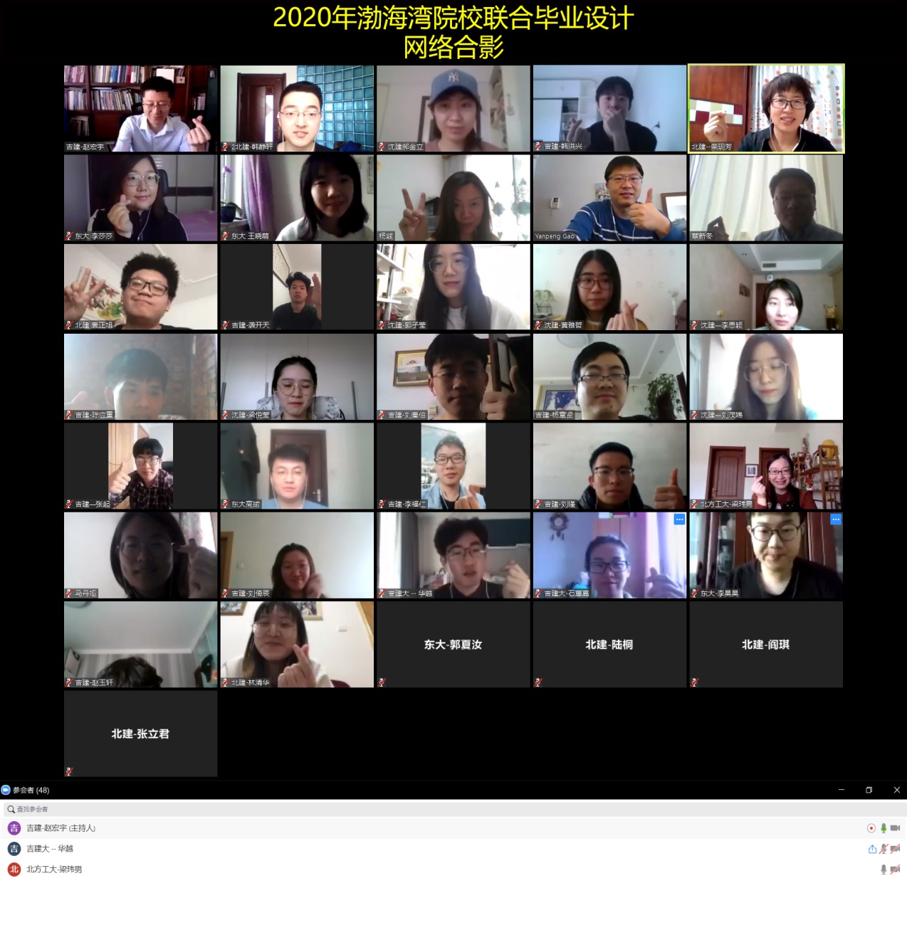 2月28日下午,2020年城乡规划专业渤海湾院校联合毕业设计在“抗疫”期间如期召开。来自渤海湾地区的5所院校(bevictor1946韦德官网、北方工业大学、东北大学、吉林建筑大学、沈阳建筑大学)共四十余名师生齐聚网络会议室,在承办方吉林建筑大学的精心组织下,通过网络视频的方式围绕“疫情防控”期间毕业设计的场地调研、资料收集、沟通联系平台等问题进行了深入的交流探讨。