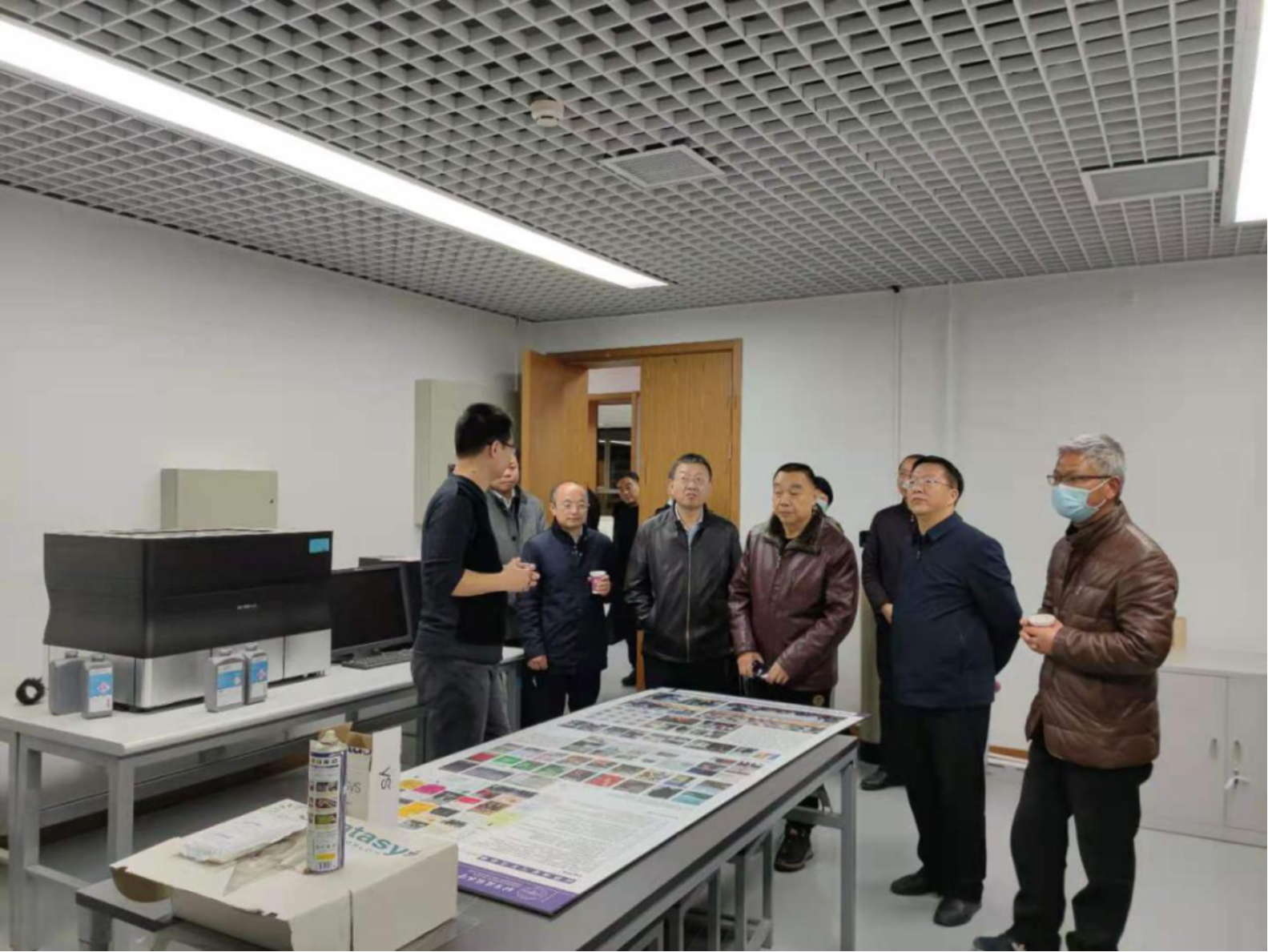 访问团首先进入建筑公司实验中心激光雕刻实验室、3D打印实验室、木器工艺实验室、声学试验室、摄影实验室进行了参观,杨振老师进行了详细讲解,分别对实验室教学的建设情况进行了说明。