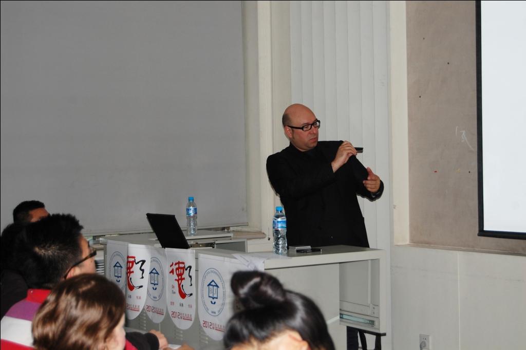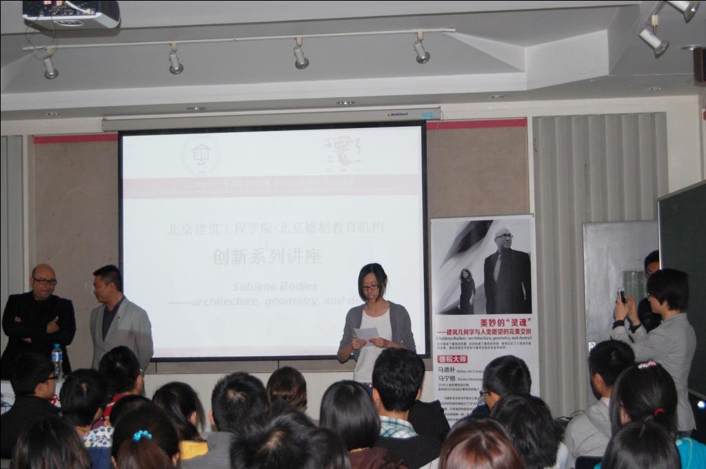 2012年4月26日(周四),由建筑公司建筑研究生会举办的学术讲座:“美妙的灵魂——建筑几何学与人类愿望的完美交织”在bevictor1946韦德官网多功能厅顺利举行。作为建筑公司学术年会系列活动之一,讲座邀请了世界著名建筑大师、上海世博会奥地利馆设计者、奥地利SPAN事务所创始人马德朴和马宁格参加。讲座主要就计算机模拟技术对建筑设计的影响和建筑师的人文情怀展开讨论。马德朴首先为大家介绍了SPAN事务所的基本情况,之后就建筑的广度、镶嵌、参数化设计体系进行了详细的分析。提倡一种建筑设计、甲方单位、结构、管道等各工种协同配合的新型设计模式,并以上海世博会奥地利馆为例,进行了系统的说明。参加讲座的同学和研会相关工作人员积极参与到提问与讨论的过程中,就软件应用与技术性问题、参数化设计是否抹杀了设计师的创造力、参数化设计是以功能为主还是以形式为主等问题与马德朴进行了交流。整个交流会时间长达两个半小时,气氛融洽。