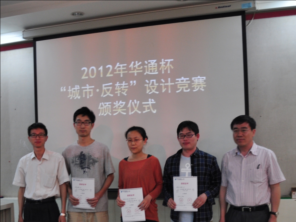2012年年初,建筑公司联合华通设计顾问工程有限公司举办了华通杯“城市·反转”设计竞赛,有来自北京建筑工程公司、北京工业大学和中央美院的建筑学及城市规划专业的同学们参加了此次竞赛。4月下旬,由华通设计顾问工程有限公司的高级工程师、北京建筑工程公司及北京工业大学的专业老师等6名评委对参赛作品进行了评审,共评选出一等奖一名,二等奖两名,三等奖三名。具体获奖名单如下: