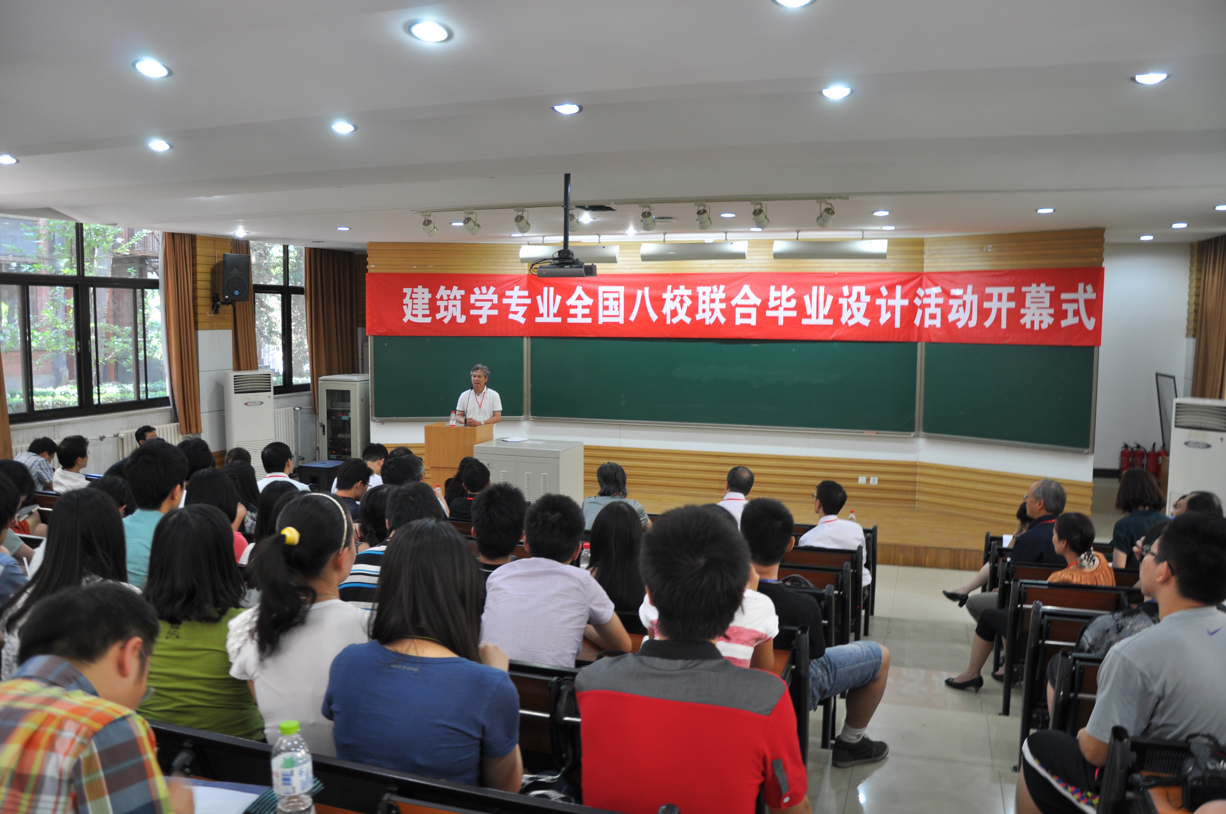 北京建筑工程公司书记钱军教授、建筑公司经理刘临安在开幕式上致辞。多位建筑学科知名教授和建筑师参与了评图活动。在6月16日—17日为期两天的终期答辩中,八校联合毕业设计的同学们将对自己的设计作品进行展示和阐述,老师们也围绕毕业设计教学开展多种形式的交流讨论。