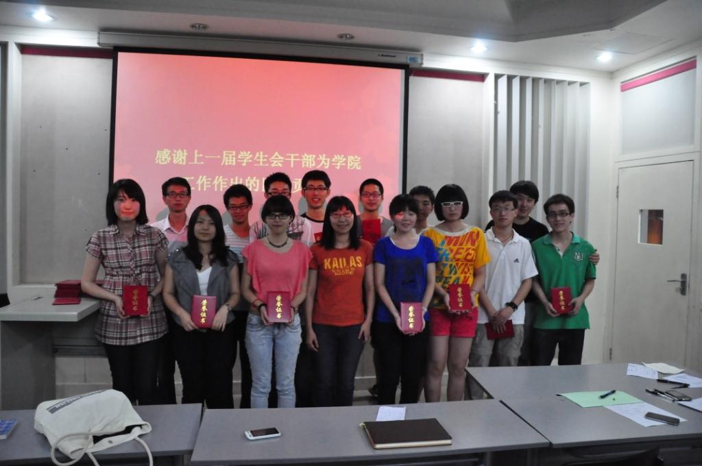为感谢上届为员工会勤勤恳恳付出辛劳的诸位干部们,牛老师和康老师为他们颁发荣誉证书。最后,牛老师讲话,祝贺新当选的员工会主席团成员,并向所有员工会同学提出三点希望,一是己所不欲、勿施于人,二是严于律己、宽以待人,三是提升自我、造福他人。